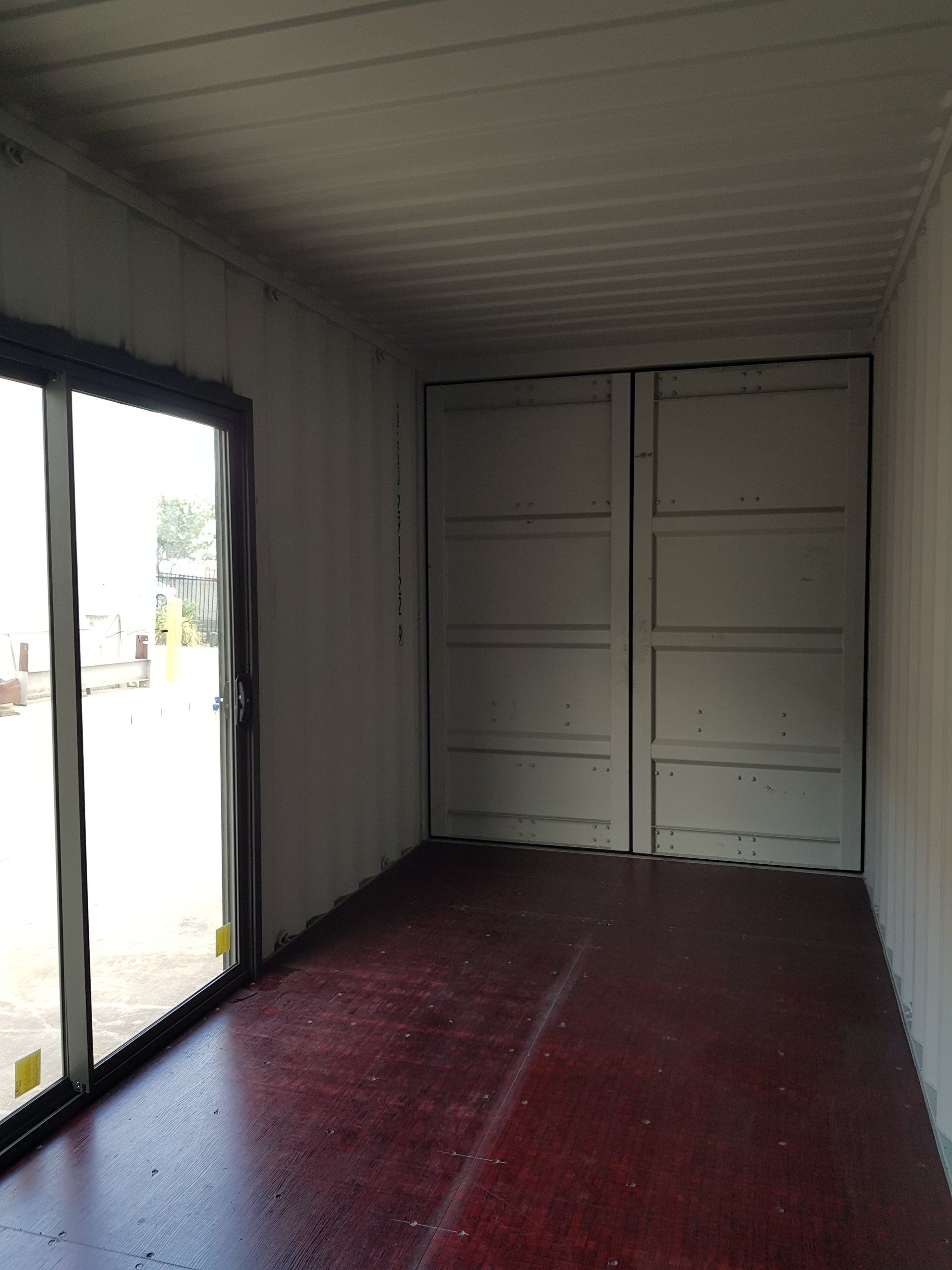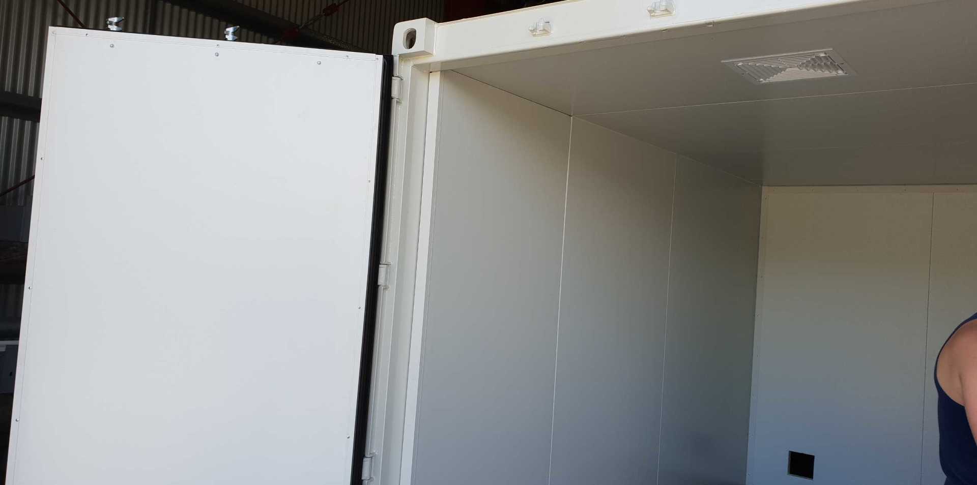 Our standard office configuration is fully insulated with 50mm EPS panelling providing optimum insulation as well as offering a magnetic workspace to hang site/work plans etc. All internal wiring is placed behind the panelling providing a cleaner aesthetic appearance. We can provide a range of different finishes ie, colours, air conditioning solutions, window and door configurations as well as different flooring options all based on your personal requirements.